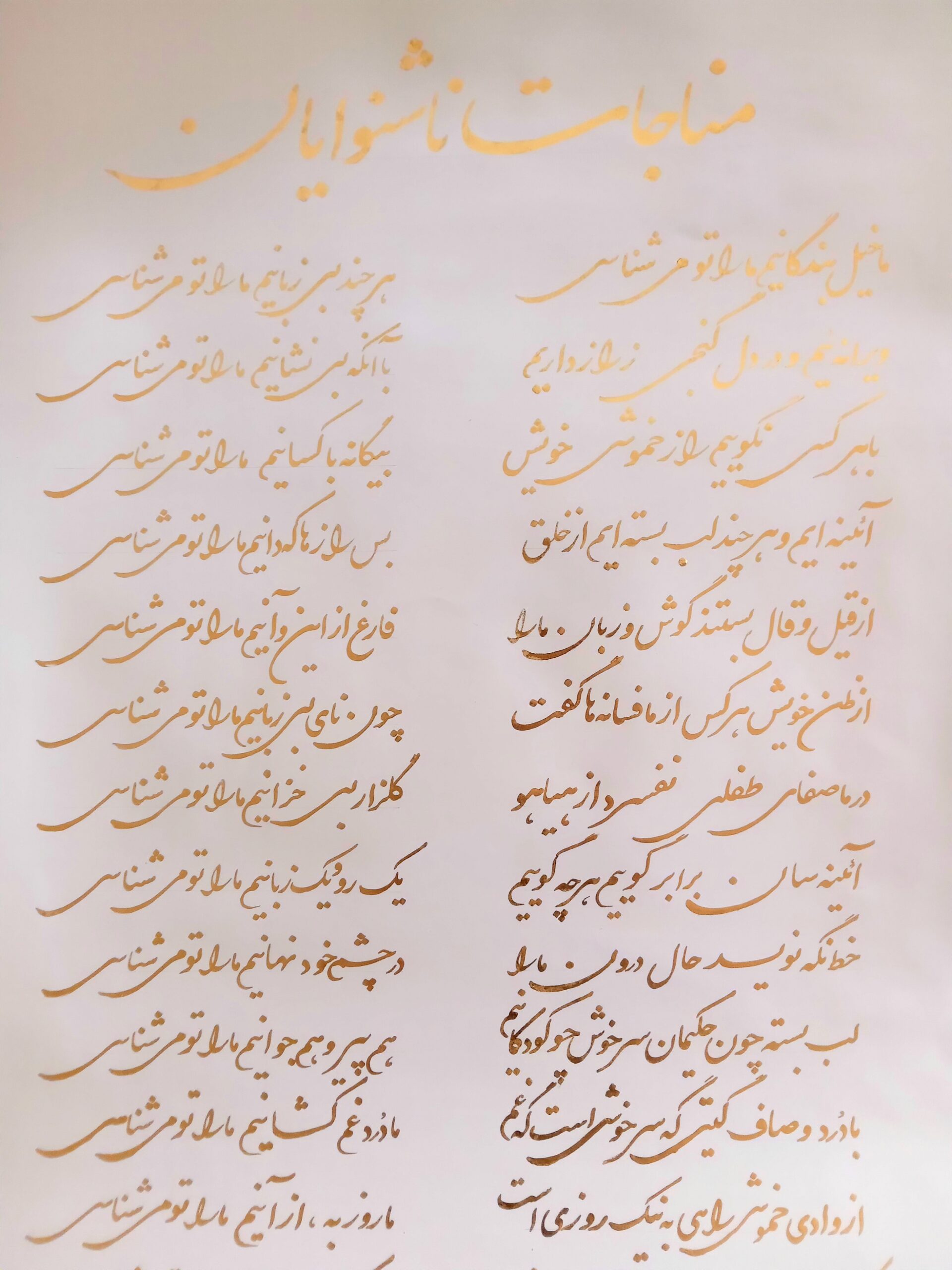 خوشنویسی نستعلیق شکسته ۱۳ بیت شعر بنام مناجات ناشنوایان.