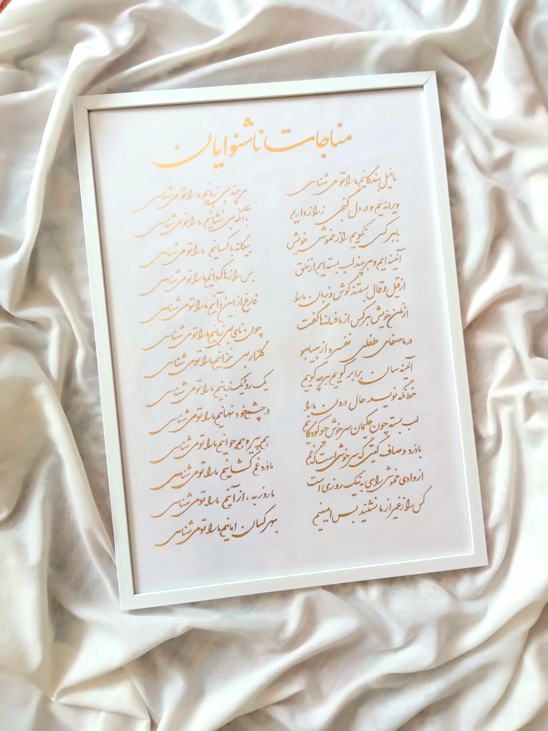 تابلو خوشنویسی مناجات ناشنوایان ۵۰ در ۷۰ با قاب سفید