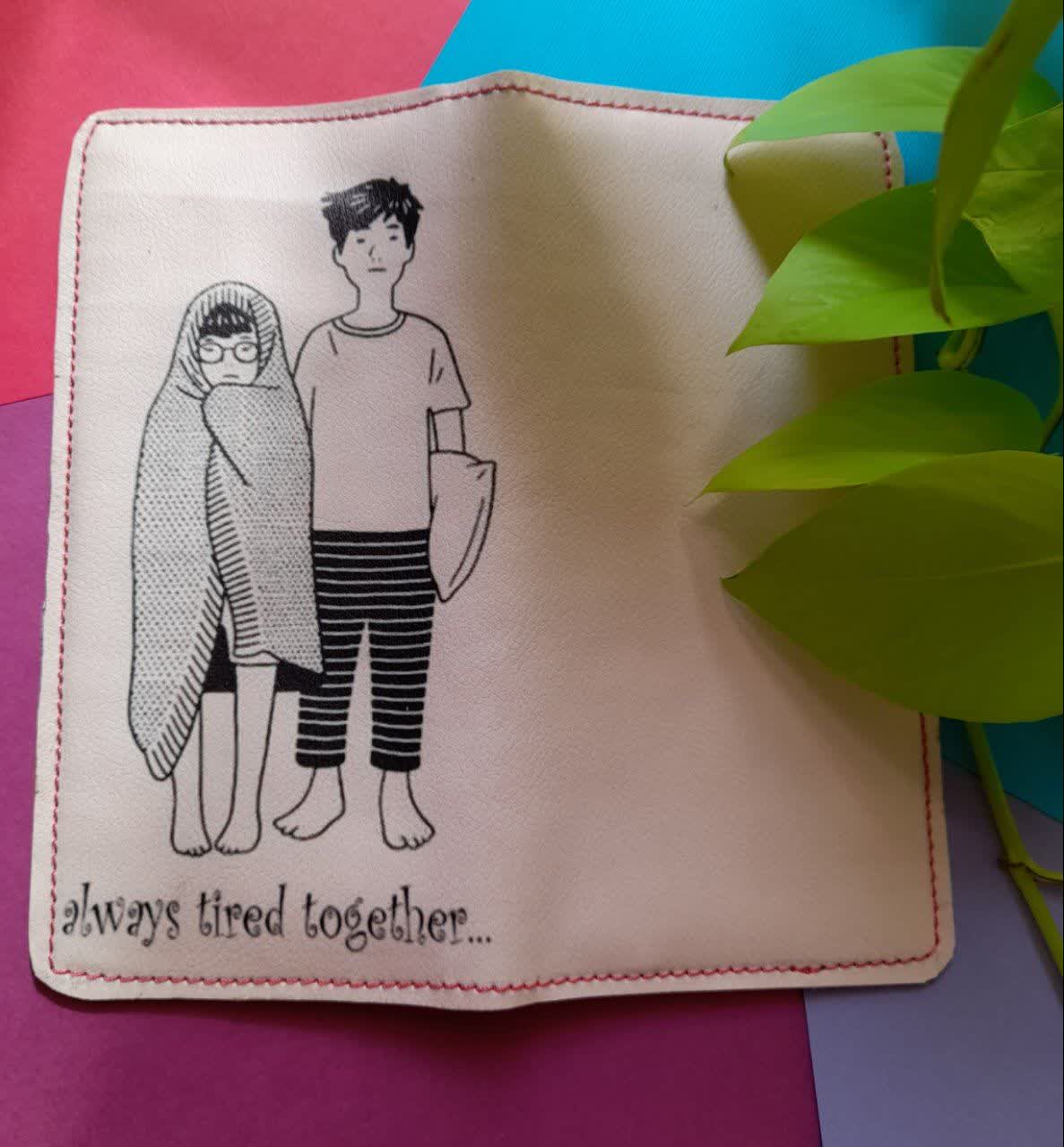 کیف پول چرمی کتابی پنلی طرح تنبل
