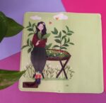 کیف پول چرمی کتابی پنلی طرح دختر برگ انجیری
